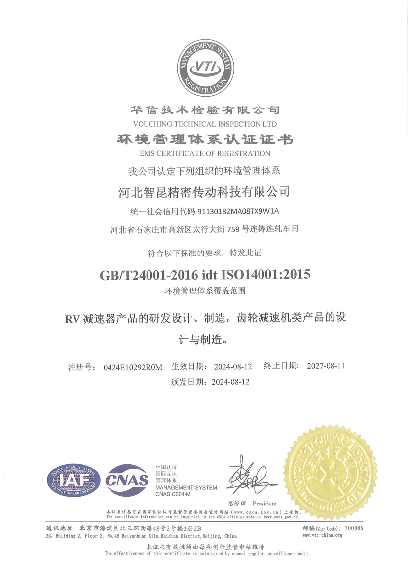 ISO14001環(huán)境管理體系證書