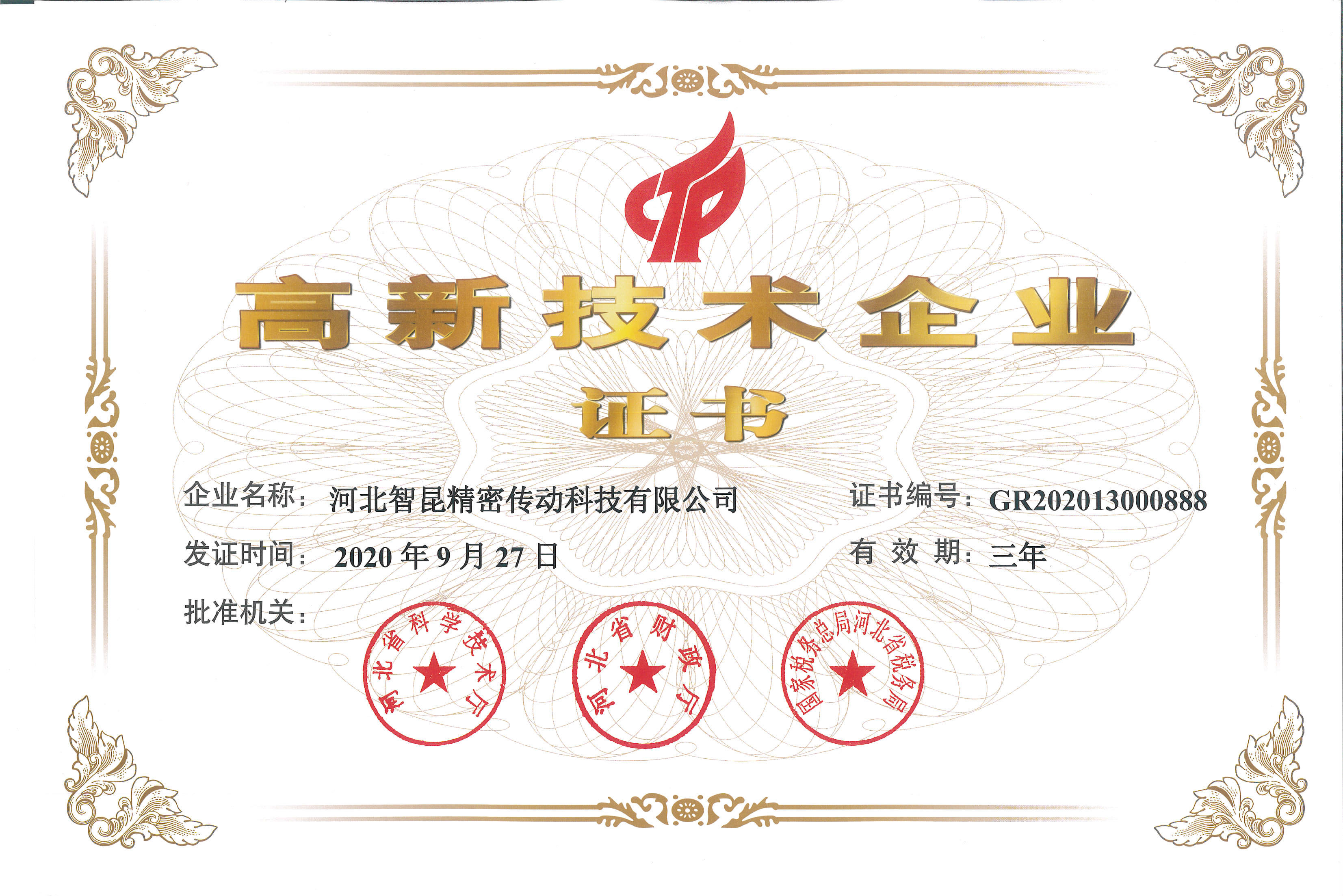 高新技術(shù)企業(yè)證書