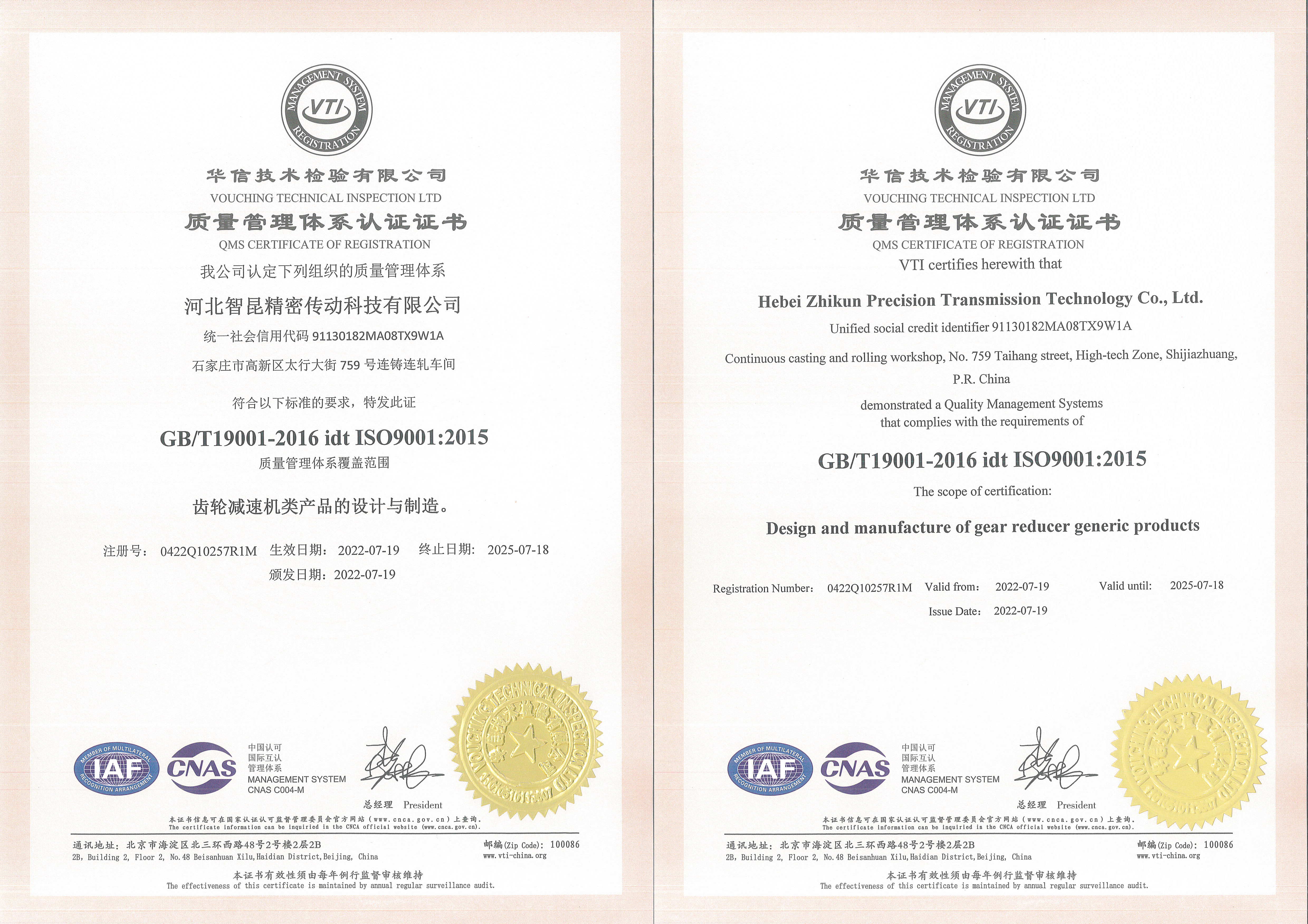 質(zhì)量管理體系認(rèn)證證書